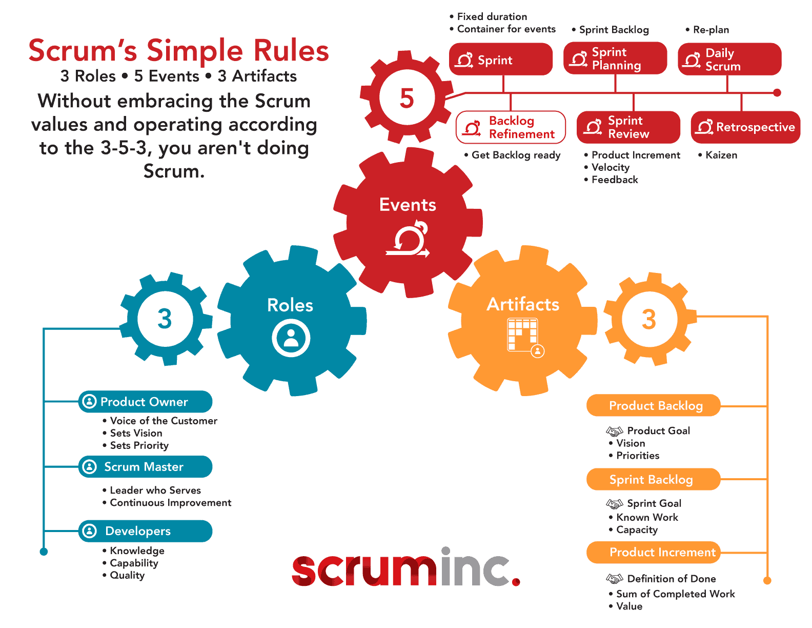 - Walk through the basics of Scrum, including roles, values, events, artifacts, etc.