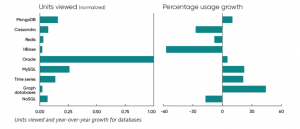 No data and database, no machine learning. The data shows that Oracle dominates the database with a 5% increase in content, a 22% increase in open source MySQL database content, and a 17% decrease in NoSQL content, which includes Cassandra, HBase, Redis, MongoDB and etc. NoSQL is not so much a technology as it is a philosophy - dedicated to extending the number of storage options for system designers.