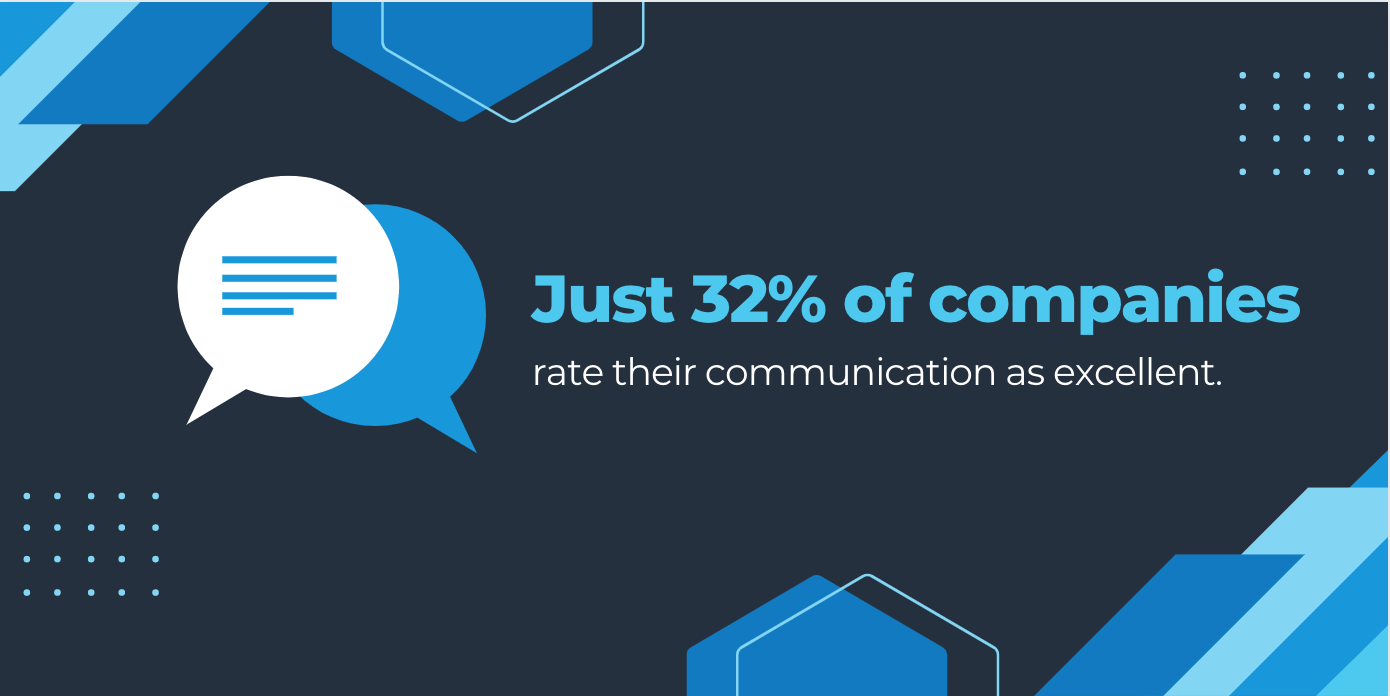 As of 2022, just 32% of companies rate their communication as excellent. This is concerning, as clear and consistent communication is key to working relationships and customer relationships.