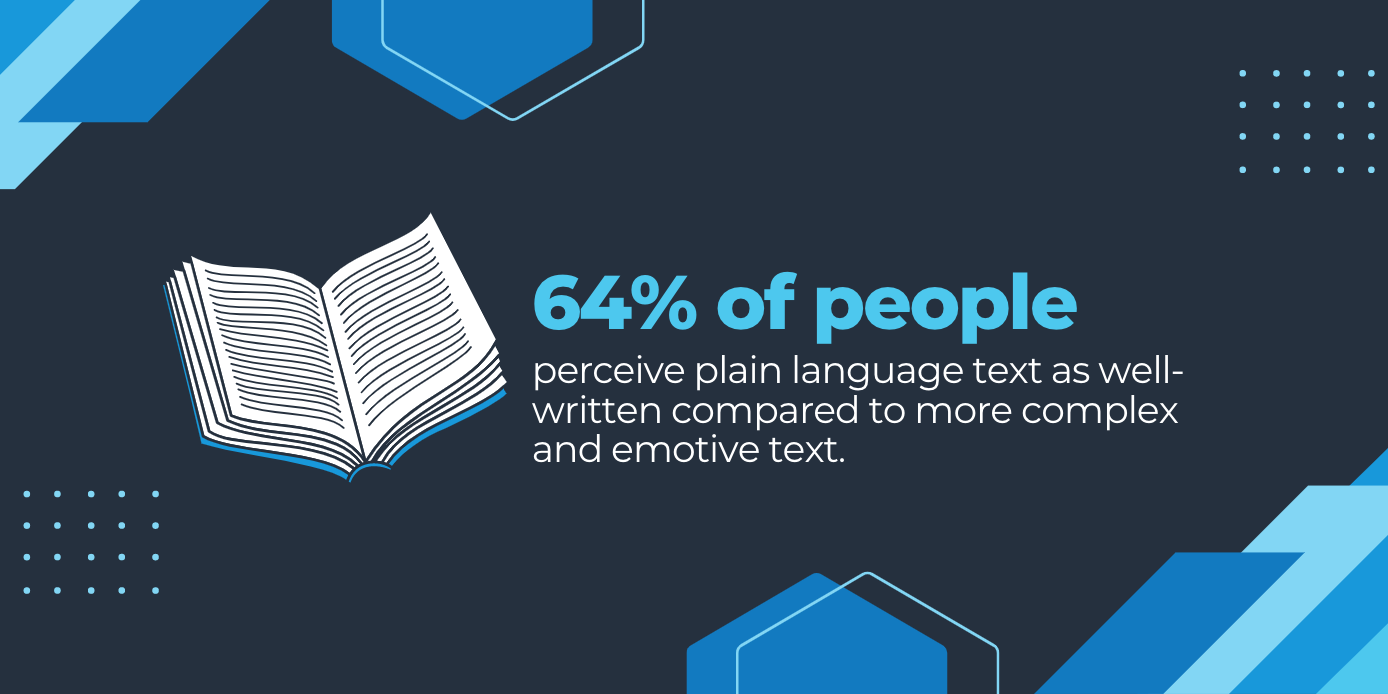It focuses on simple vocabulary, short sentences, and removing jargon or emotive language so that people of all communication styles can see the core message immediately. This could have significant effects when it comes to cutting out misunderstanding: in a study, 64% of readers perceived plain language text as well-written compared to more complex and emotive text.