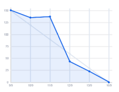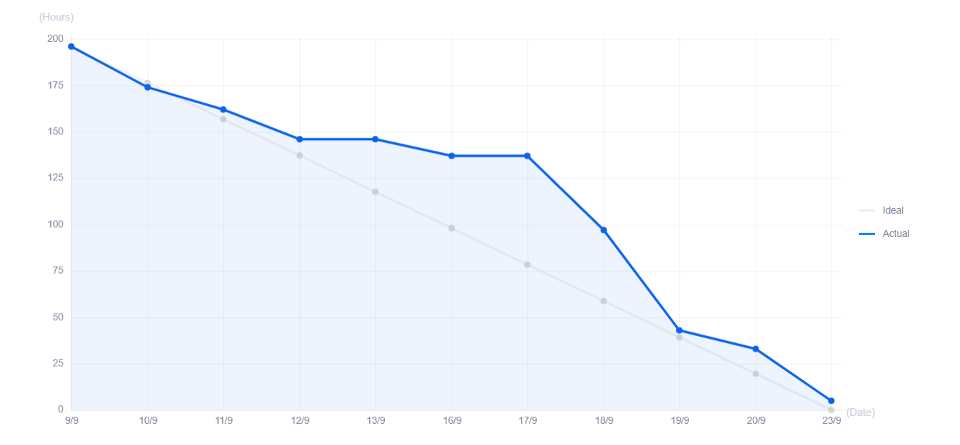 The actual progress of each project is different, so is its burndown chart. A Burndown Chart reflects problems, so the team can find and adjust in time.- If the actual line is below the ideal one, it indicates that the progress is smooth and it is very possible that the project will be completed on schedule;