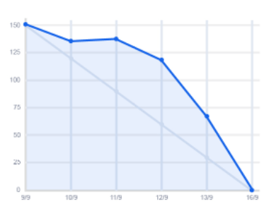 - Actual remaining work: a line goes up and down around the ideal line