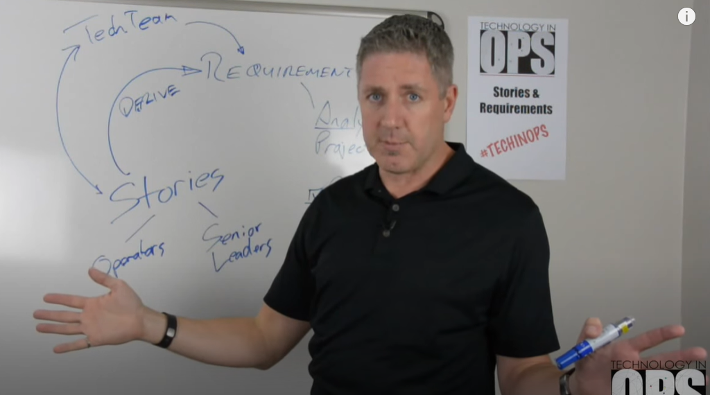 I put a two-way arrow here, because the stories from the technical team, talking to the operators are just as important, if not more important. The operators need to be engaged, if they read requirements. They're gone. They're just out of there. If you're an operator, if you know what I'm talking about. If you are not interested, if it is not relavant, then it is just out of there. You move on to something else in your head. You may be sitting in there, but you are gone. The technical team now must tell a story in an operator speak. There are technical pieces behind it. They need to translate it, tell a coherent stories that we all understand to get on the same page, and we can all tell the same story. Your operators can then tell the tech team where things are wrong. Tell them a little slightly adjusted story. Now you missed this point. You need to go do it this way and we don't do it that way. We can't do it that way. Here's why. Those aren't requirements.