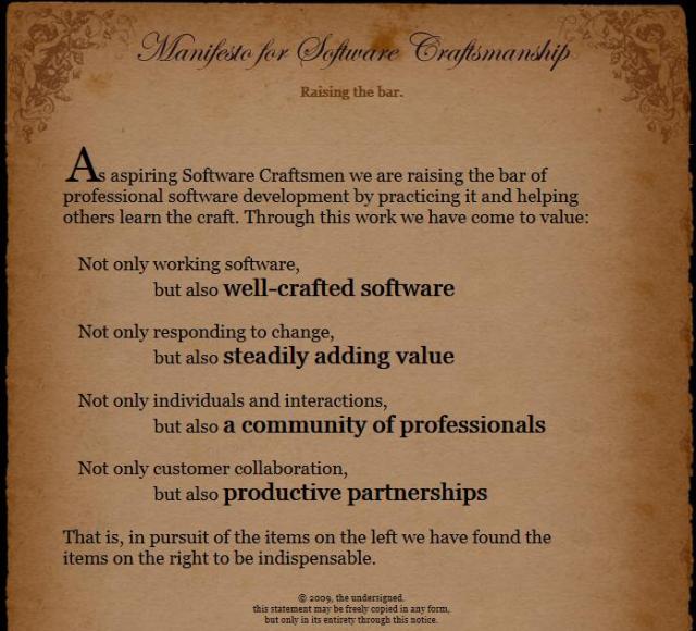 "Craftsmanship Spirit" means that developers no longer regard their work as boring but provide professional services based on the desire to do things well. The "Craftsmanship Spirit" proposed by Bob focuses on developers and has received support from many developers. To raise the standard of software development and redefine the original agile goals, a group of developers gathered in Chicago in November 2008 to launch a new movement: Software Craftsmanship, and develop a set of core values.