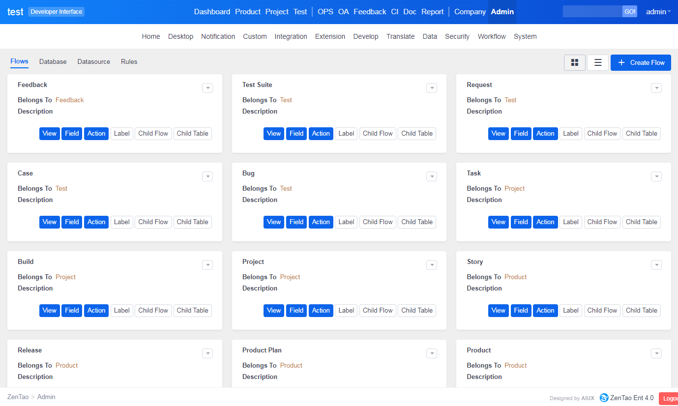 ZenTao Enterprise 4.0 is released! This release is to fix bugs and to integrate the latest version of the Flow feature in Zdoo, a team collaborative system with CRM features.