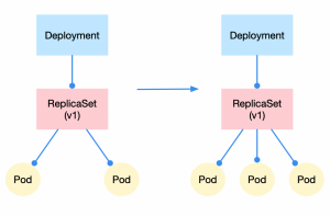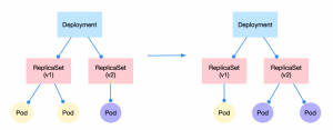 The update/rollback reflects the need for the replicaset object to exist. For example, if we need to change the version of an application from v1 to v2 with 3 instances, the number of pods controlled by the v1 replicaset will gradually change from 3 to 0. In contrast, the number of pods controlled by the v2 replicaset will annotate from 0 to 3, and the update will be completed when only the v2 replicaset exists under the deployment. The rollback action is the opposite.