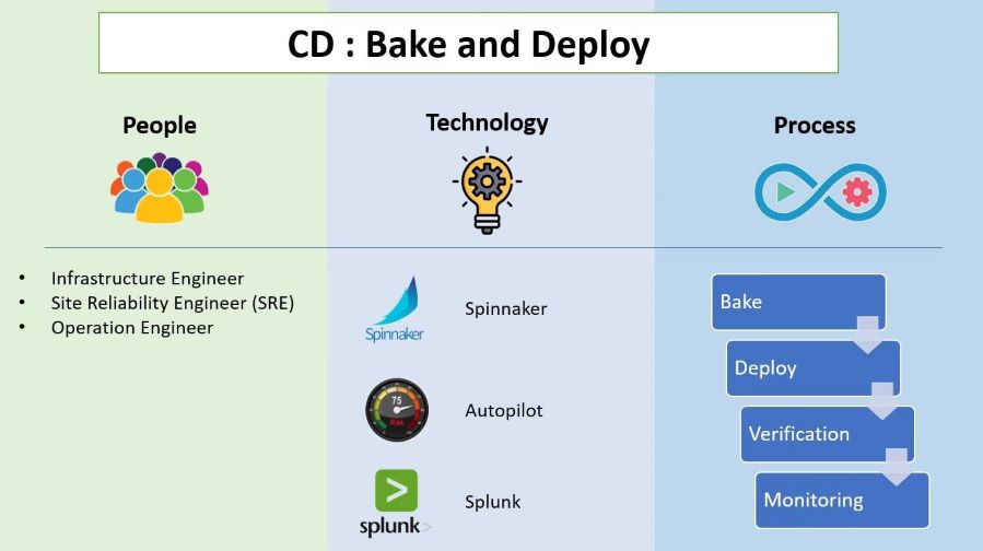 Process: After the test phase is completed, the cleared standard code can be deployed to the server, where it will be integrated with the main application. Before being deployed to the production environment, they are deployed to a test/staging or beta environment used within the product team. Before moving the builds to these environments, the build must go through two sub-phases, Bake and Deploy. Both phases are inherent to the Spinnaker.