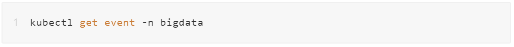 The system can view all events under bigdata namespace by executing the following command.