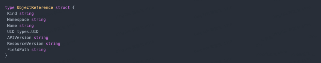 - involvedObject: the resource object that this event belongs to (the object that triggers the event). The structure in the source code is as follows:
