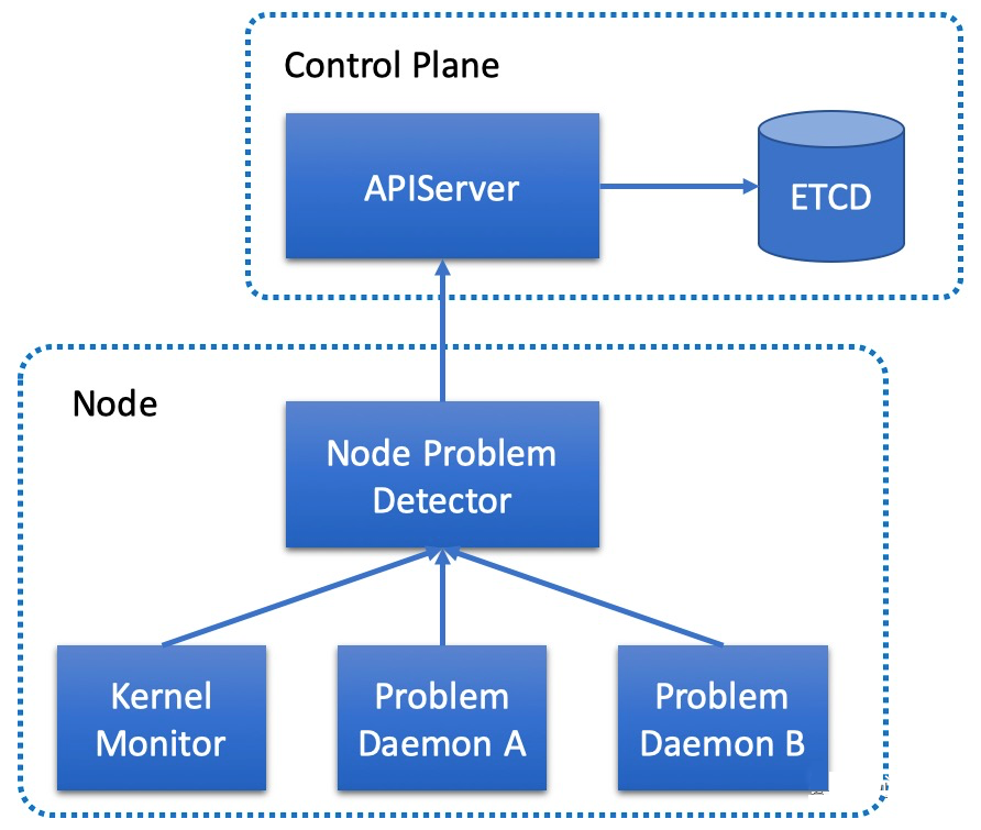 NPD is a DaemonSet responsible for node diagnostic checks in Kubernetes, which requires additional deployment. The check output of NPD fully complies with the event specification of Kubernetes. It can convert anomalous node situations (such as Docker Engine Hang, Linux Kernel Hang, Network anomaly, and file descriptor anomaly) into node events, which are pushed to APIServer for unified event management. When the node is detected as abnormal by NPD, an event about the abnormal node will be generated. The operation and maintenance personnel can quickly view the abnormal information and reasons of the node through kubectl describe node $nodeName.