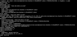 kubectl get event aitm-customerservice-chatbot-2-65cd489c97-j4scv.1708265c3fe14fcb -n bigdata -o yaml
