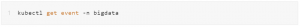 The system can view all events under bigdata namespace by executing the following command.