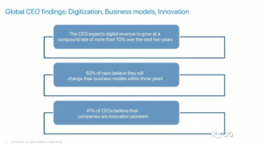 From the CIO point of view, from the development point of view, from the IT point of view, we believe that agile and production must be implemented. Below is a Gartner survey of CEOs around the world, looking at their demands for digitalization, business models, and innovation, and discussing how digitalization relates to the enterprise.