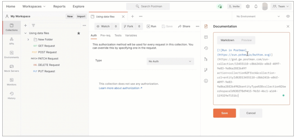 A casual game company uses Postman as a collaboration tool. The company's testing software development engineer is responsible for researching and finding out all the test cases of API. Then he publishes that information on Wiki so that others can run API tests and ensure that what they are doing does not damage the existing API functions. Postman even allows you to place a button on the company's internal website - it says "run in postman," and it automatically starts the Postman test.
