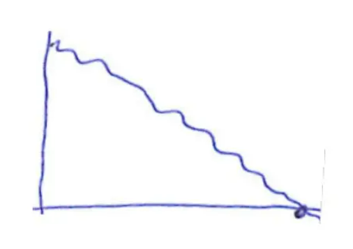 The first iteration of the team is generally this kind of burndown chart. This situation is the mother of success, and it is clear that the team is not up to the task. Every day, requirements or tasks are added to the iteration work, but no quarter of the work is recorded. Another reason might be that tasks in iterations are constantly being re-estimated.
