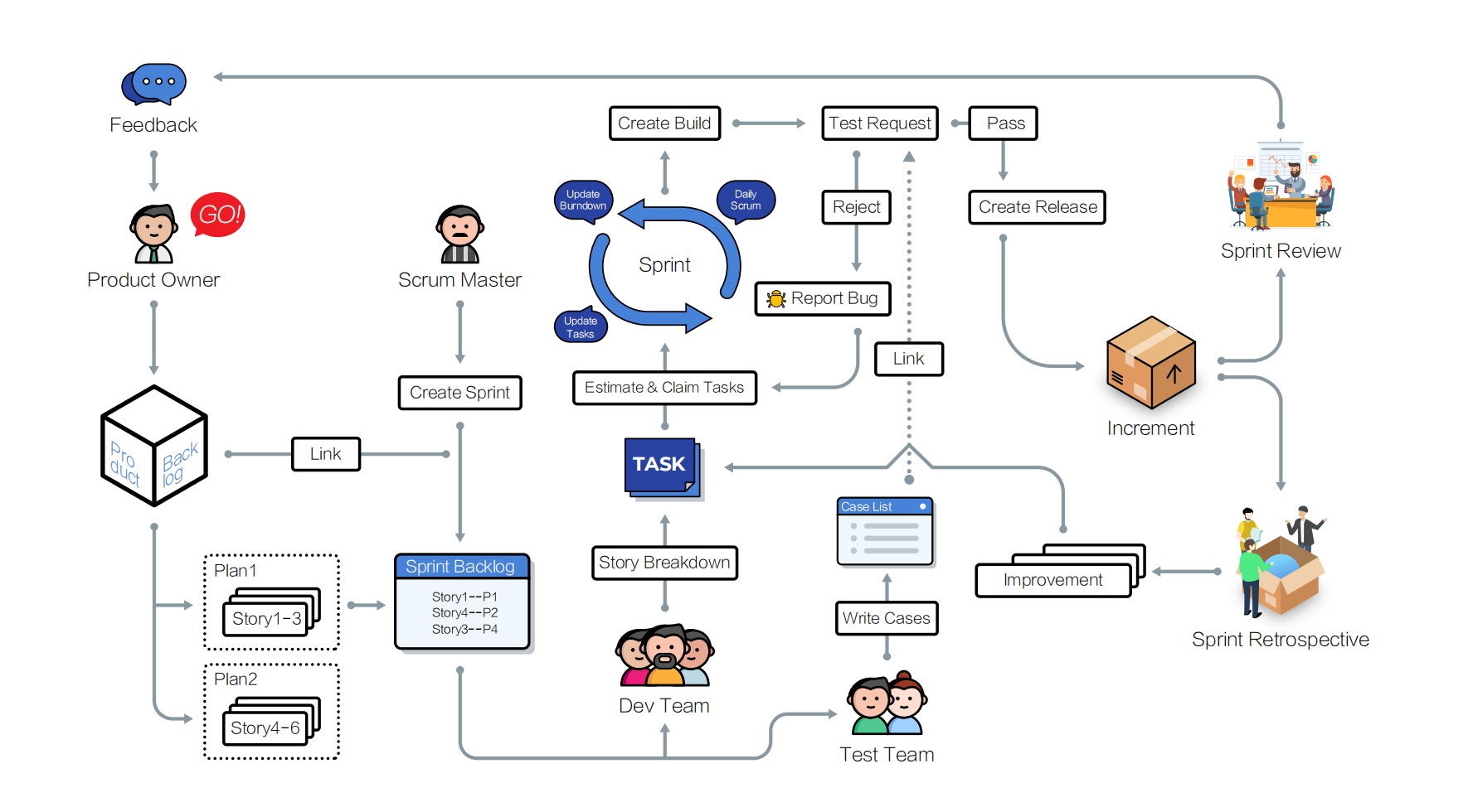 This is the core of any Scrum tool. Sprints are repeated, predetermined periods of time for completing sets of tasks or work items from the backlog (generally from 1 to 4 weeks). Sprints should have connections with product or user stories, in each sprint, each team member should be clearly specified which backlog items or user stories should be done.