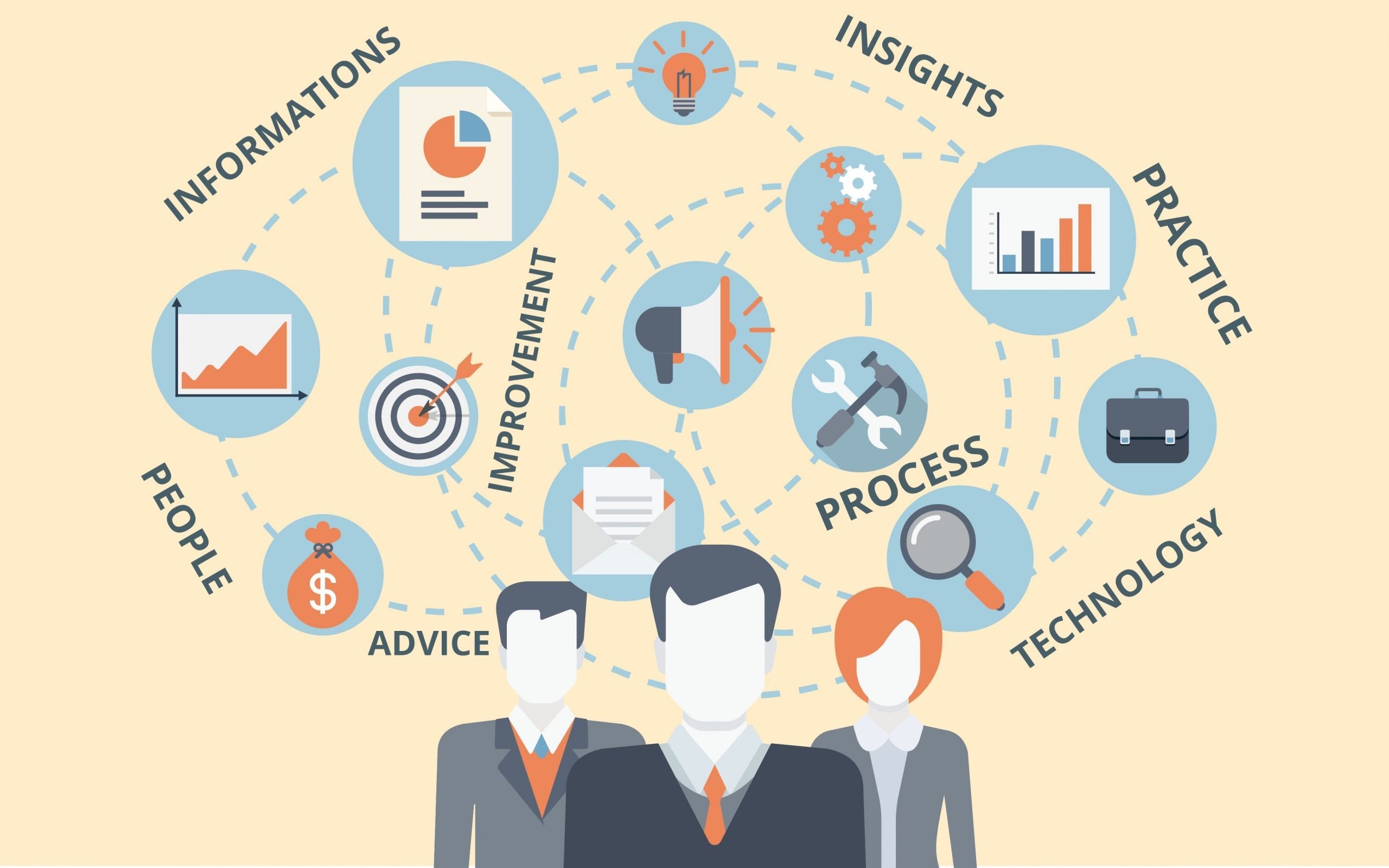 In summary, we seek guidance on business strategy from upper management, learn about business processes from mid-level management, and experience business execution from front-line staff.
