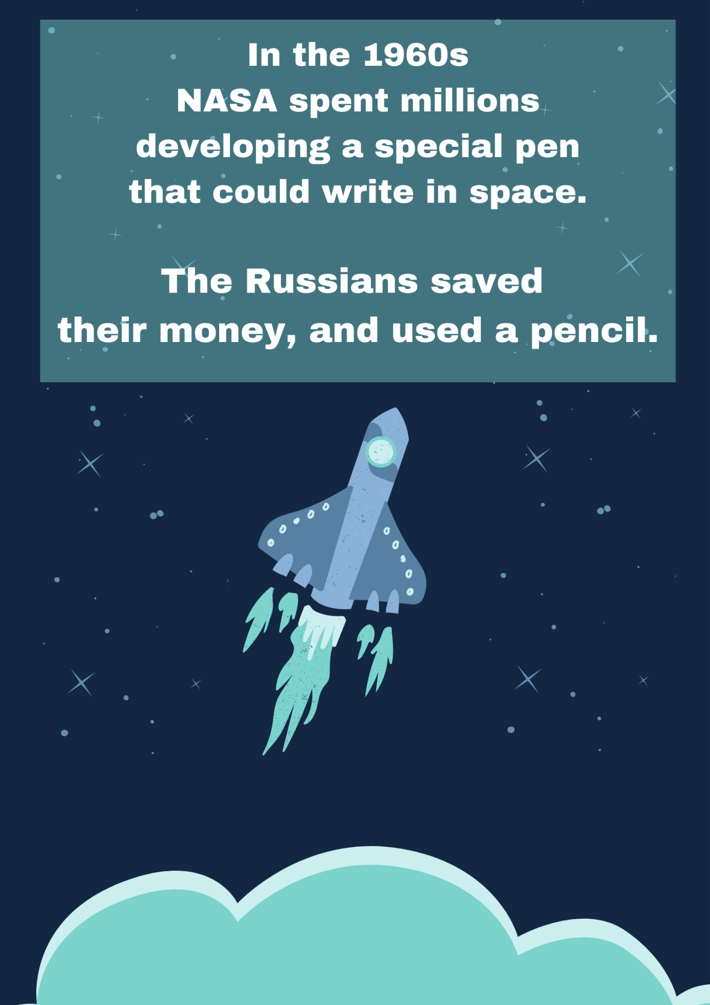 As we said, this is mostly a myth (the ‘space pen’ was actually invented by an external corporation, and would eventually be adopted by both NASA and the Russian space program). However, it shows how trying too hard to be innovative can get in the way of effective problem-solving.