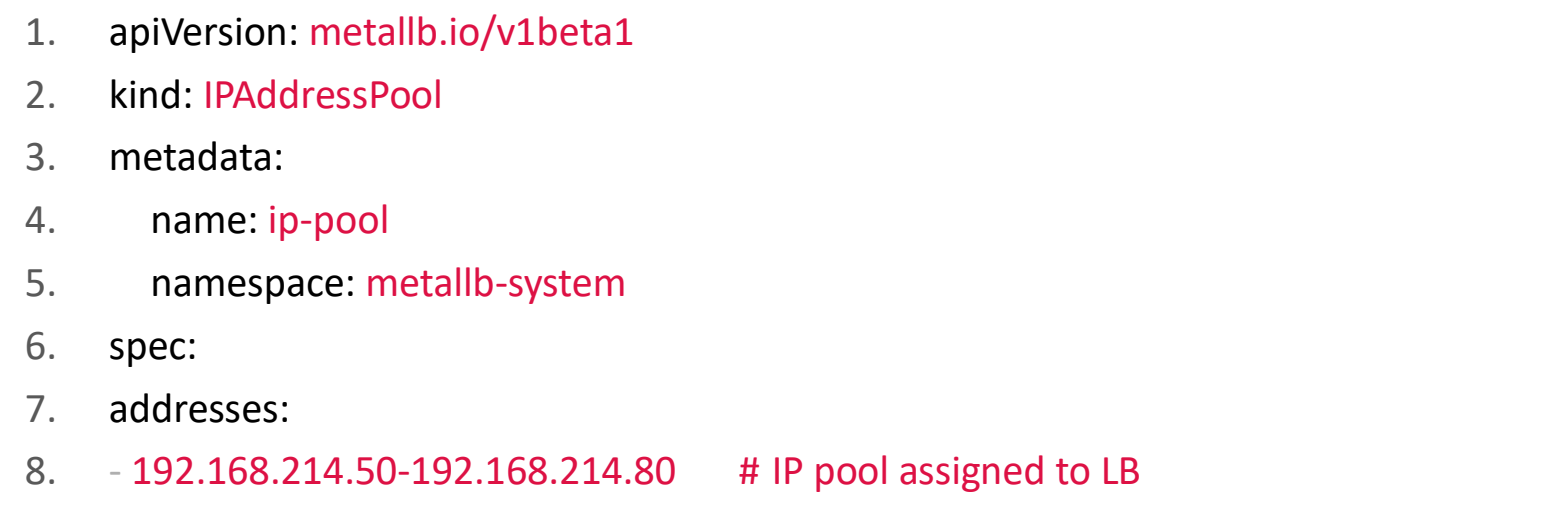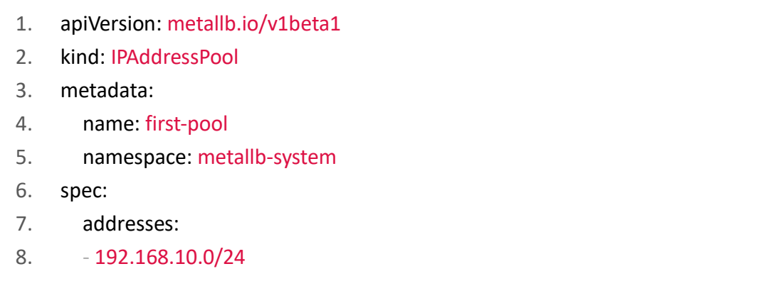 We create an IPAddressPool and specify the IP pool to be used for allocation.
