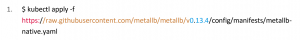 We should run the following command to install related components. By default, MetalLB will be deployed to the namespace of the metailb-system.