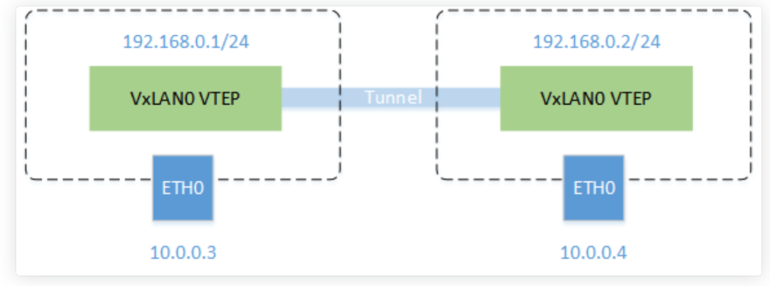 The above architecture shows tunneling is an abstract concept, not a real tunnel established at both ends, but a network overlay achieved by encapsulating a packet into another packet and then unpacking it via the same device (network tunnel) after transmission through the physical device.