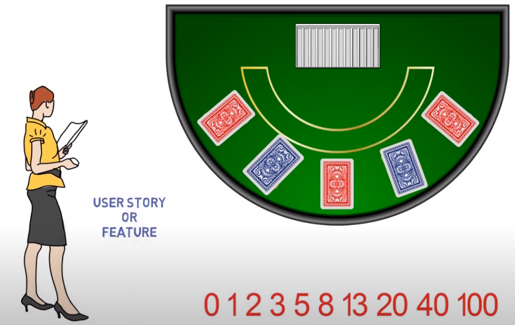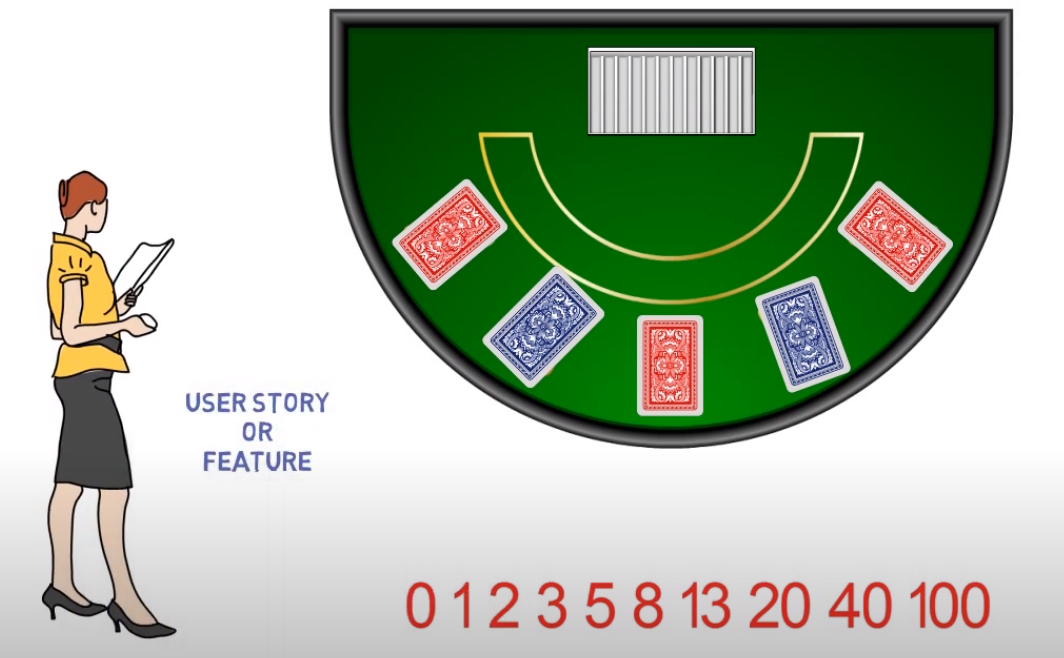 At the start of the planning poker session, every person in the team holds a deck of planning poker cards. Each card contains a value like 0,1,2,3,5,8,13,20,40 and 100. The product owner or customer then reads an agile user story or describes a feature to the estimators. Here the term ‘estimators’ means the whole team.