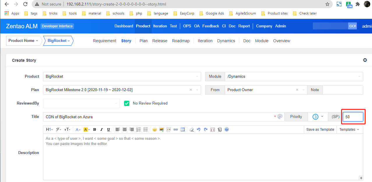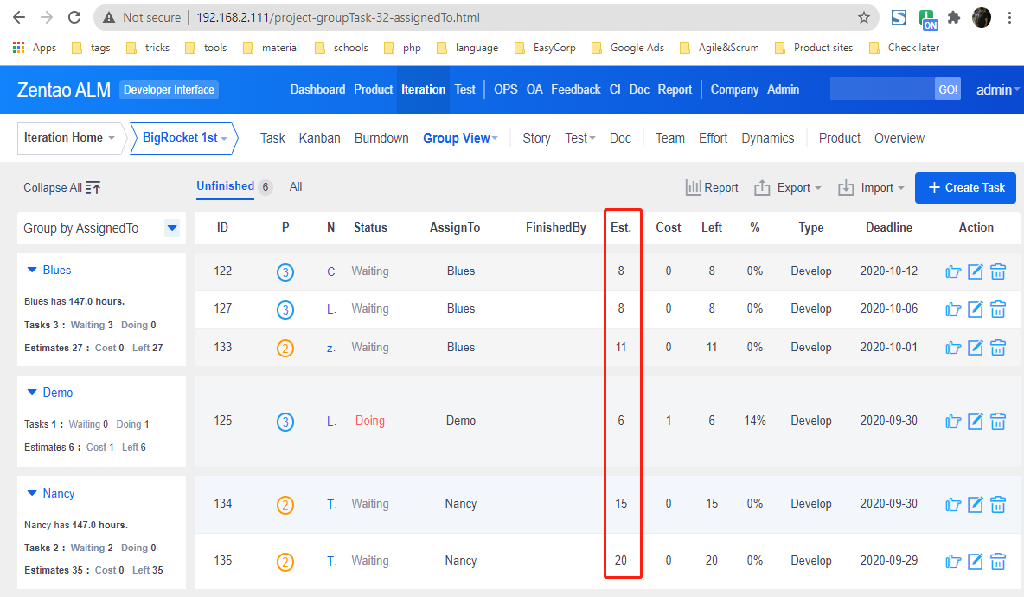 You could estimate product, sprint, story, task, test request, etc. when you are trying to create them in ZenTao. Some for specific hours, some for specific days or weeks.