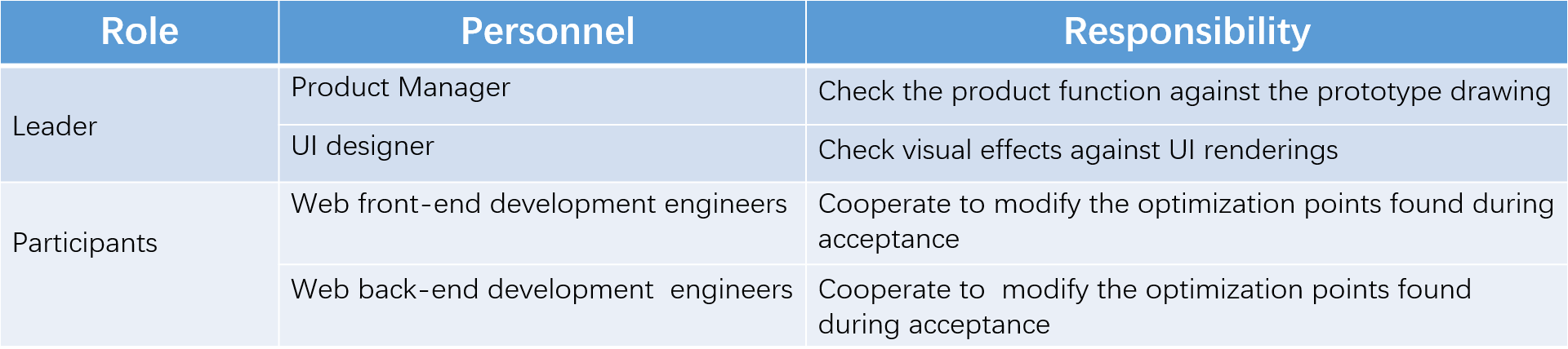 Product acceptance is a step in product development in which the product manager and UI designer check the conformity between the final product effect and the design scheme.