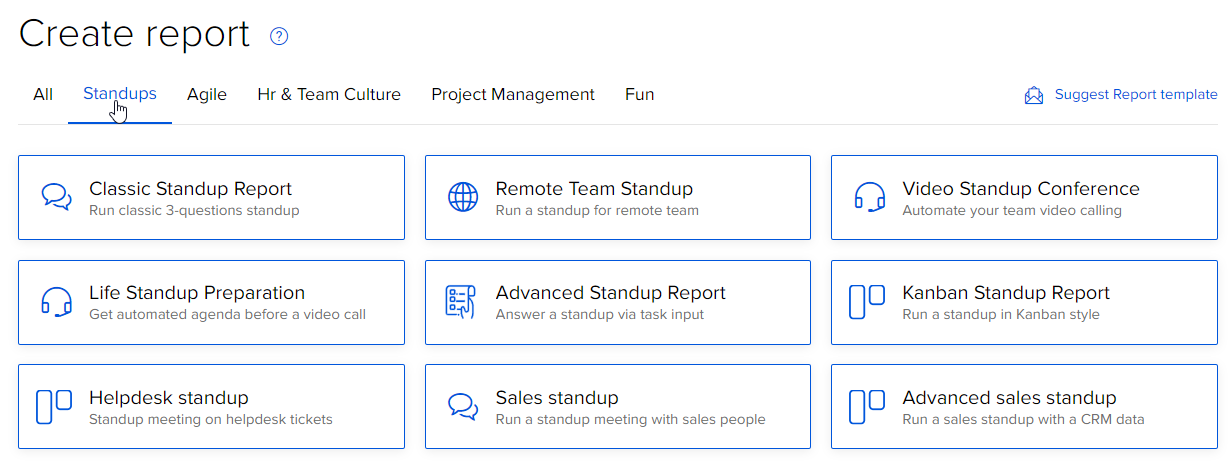 Standuply runs so-called fun meetings where you can plan non-work-related pastimes. So, run the Friday pizza report or maintain working days with interesting matters and share a fun fact of the week with your crew.