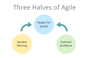 Iterative planning and technical excellence are the two halves of Agile. What is the third half? It is respect for people. If you miss any, you miss a lot. This means you have to learn how to be a member of a team. Gerald Weinburg's view about the "egoless programming" explains what this it. The team needs to trust each other and be sufficiently mature to work together to build great software.