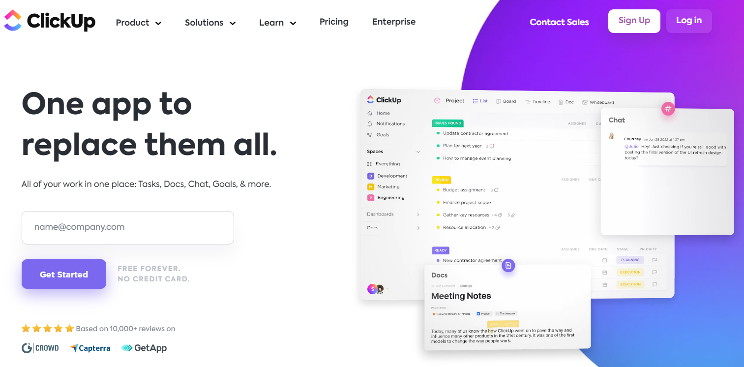 Clickup is a project management tool that helps you manage many teams, customers, and projects. It's easy to use, has a great UI, and can be used by anyone with an internet connection. It also provides analytics and real-time reports for teams to use when analyzing the progress of their projects.