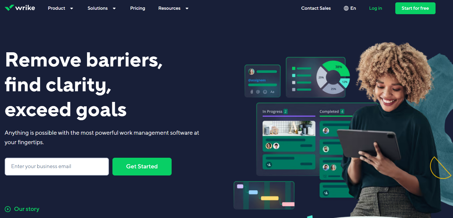 Wrike helps you manage every aspect of your business. From scheduling tasks, collaborating with team members, and tracking project progress. This tool is used to schedule tasks and set deadlines for projects, clients, and milestones. It also tracks time spent on tasks by yourself or your team members. And it also creates tasks for emails sent or received to keep track of email conversations related to specific projects or clients.