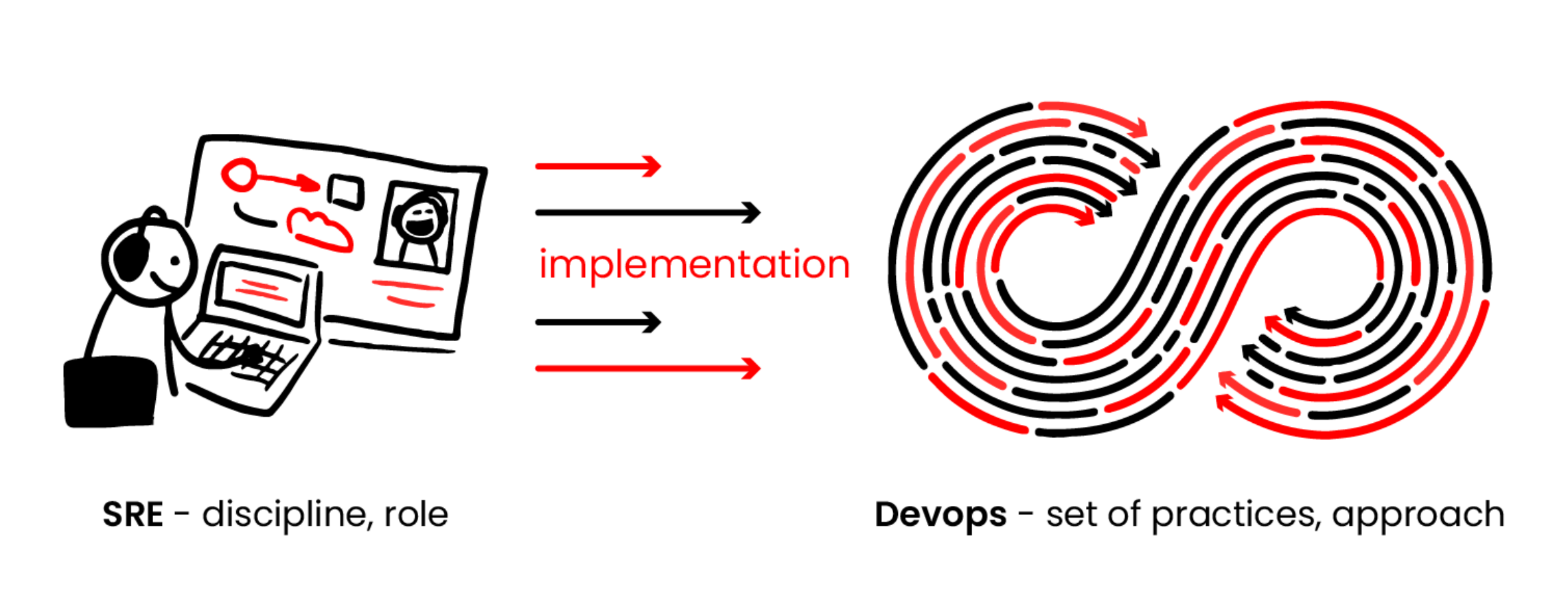 DevOps is about what needs to be done, but SRE is about how it can be done, and SRE is about extending the theoretical part into an effective workflow using the right methods, tools, etc. It is also about sharing responsibility among others and making sure that everyone has the same goals and vision.