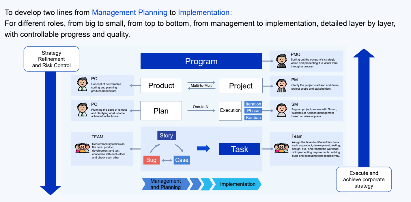 For a generic product, the process definition needs to be versatile and adaptable. Customization projects can be implemented based on specific customer requirements. However, for a product like ZenTao, it must consider different industries, company sizes, and management styles to achieve the best possible fit while maintaining flexibility. This presents a significant challenge that tests the team's abstraction and creativity. For instance, ZenTao incorporates built-in features such as multi-person serial tasks, multi-person parallel tasks, twin requirements, and multi-platform and multi-branch products, addressing diverse customer scenarios.