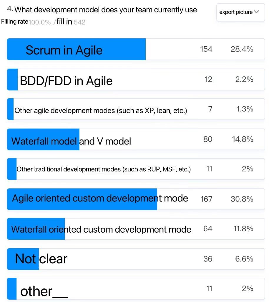 Over the past 20 years, how many Scrum Agile coaches have come one after another, but how effective is the implementation of Scrum Agile Development Mode in China? The effect is average. According to the survey data of last year and this year, only about 28% of organizations have implemented Scrum Agile Development Mode, and it is estimated that some are fake agile.