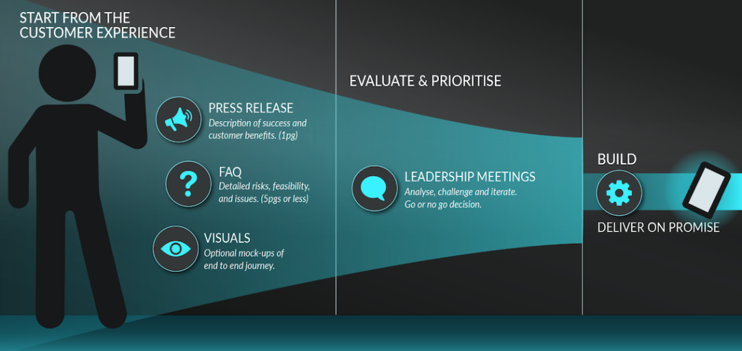 - Amazon's reverse work method, as shown in the following illustration, has only three steps and is easy to remember and implement.