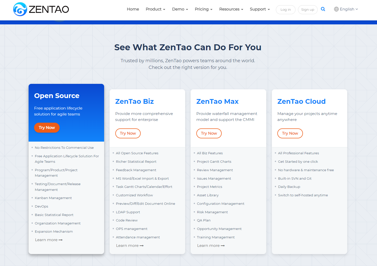 ZenTao is an open-source Scrum tool and an application lifecycle management (ALM) solution aimed at making project management easy. It is plug-and-play with a fresh configuration that’s quite easy to learn. Serving more than 28,000 companies, ZenTao is designed to help product development teams with ALM. As it is open-source, it is easily scalable and is unlimited to commercial use, making it a viable option for companies of all sizes.