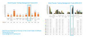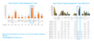 Data from the report show that the Top 3 most popular tools are ZenTao( 43%), Jira( 26%), and in-house solution(19%). As some of you might have read the article about 10 Best Test Management Tools 2019 our team posted, ZenTao was the top 1 and had 40% share of the market. ZenTao market share keeps growing over years as you can see from the diagram below and has been implemented in more and more companies, including Twitter, Changan US, ZTE, Lenovo, Volkswagen Shanghai, etc