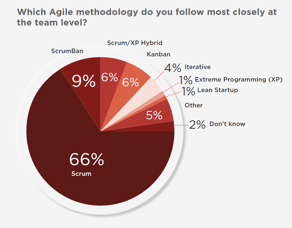 According to the 2021 Annual State of Agile Report, 66% implemented Scrum, 6% implemented Scrum+XP, 1% implemented XP only, and overall, only 7% did Extreme Programming.
