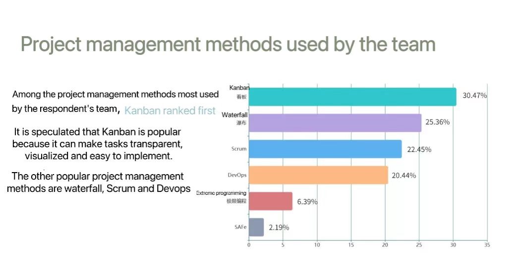 The "IT Project Management Survey 2020" of ZenTao project management software also has a similar proportion. The proportion of the practising extreme programming team is low, at 6.39% -- reports from different bases and people at home and abroad have reached a relatively consistent conclusion: the proportion of teams implementing extreme programming is low.