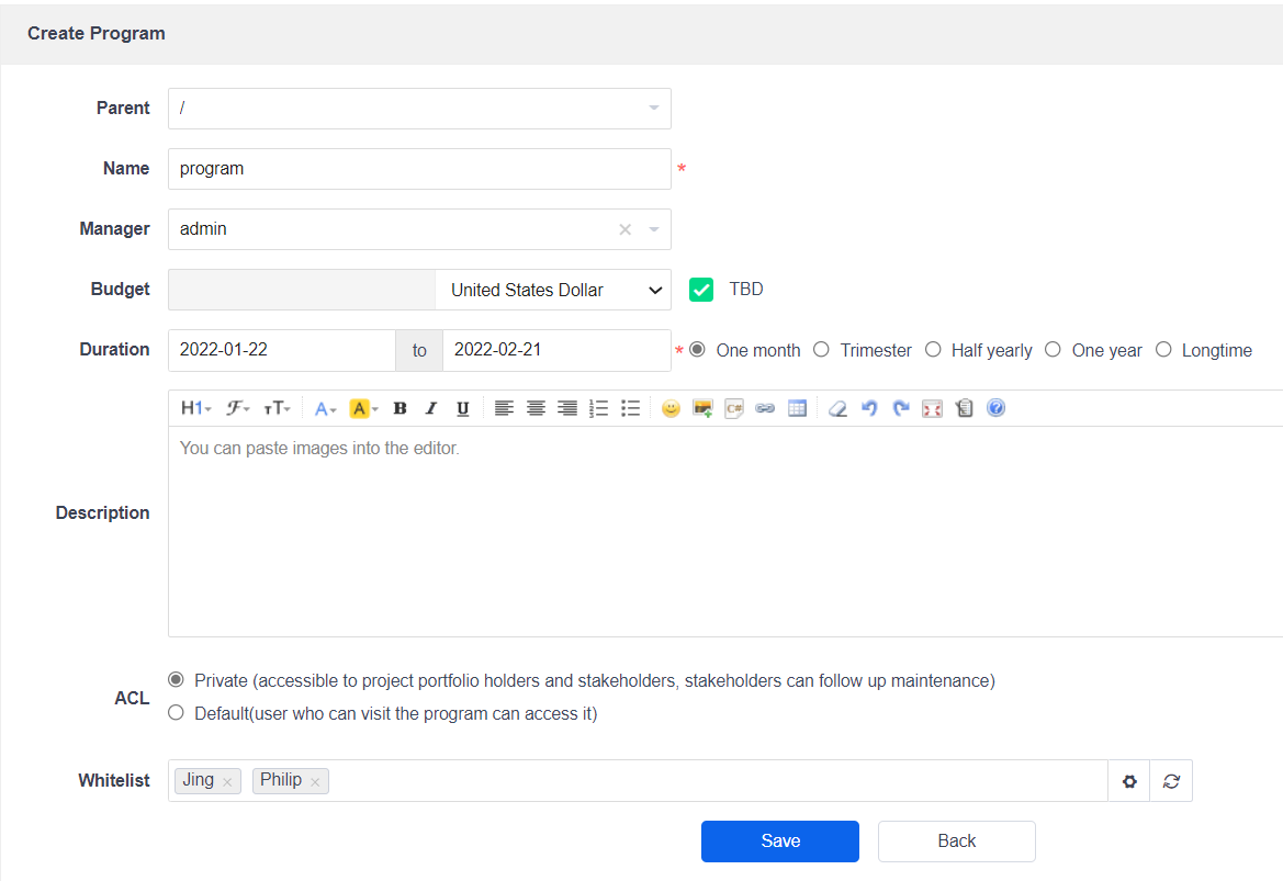 If you didn't choose the Parent Program, the system will create a product with the same name as the project by default and link to the project.
