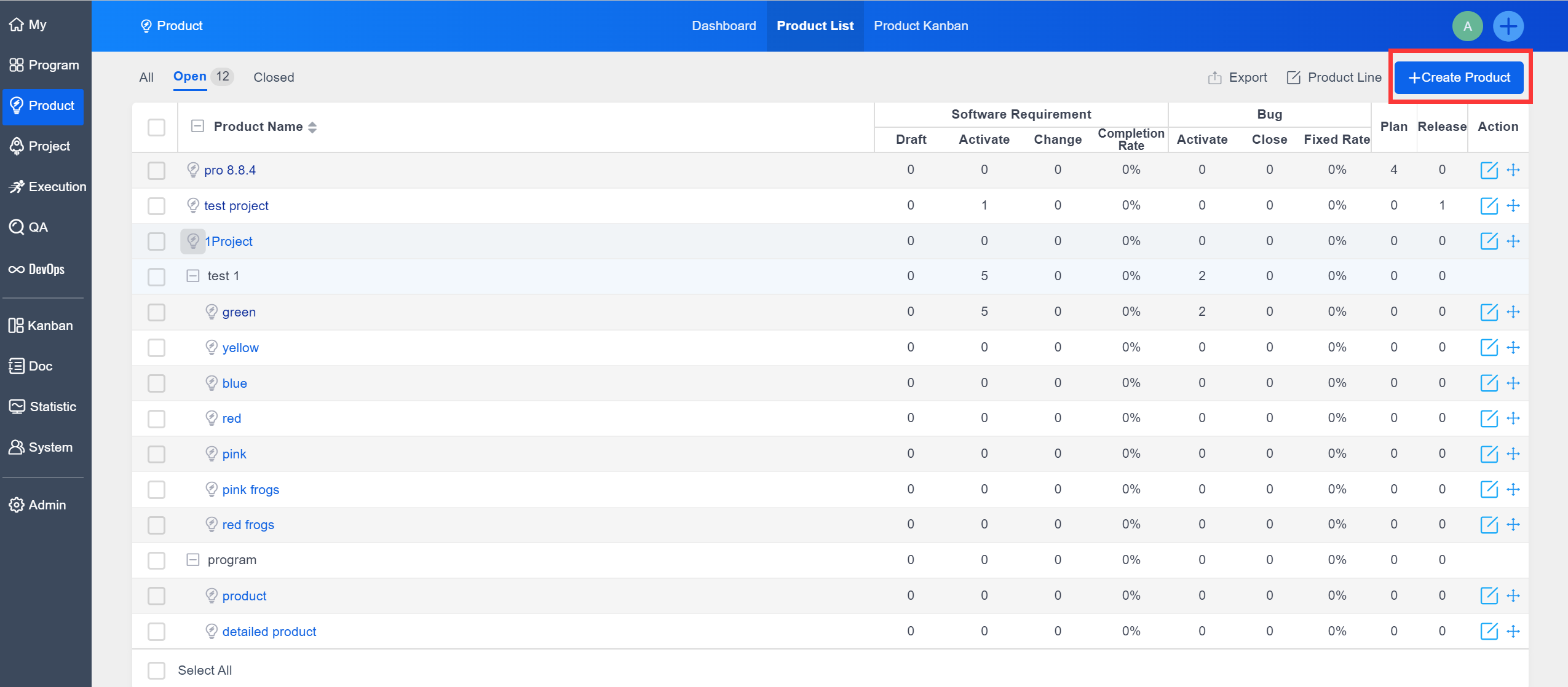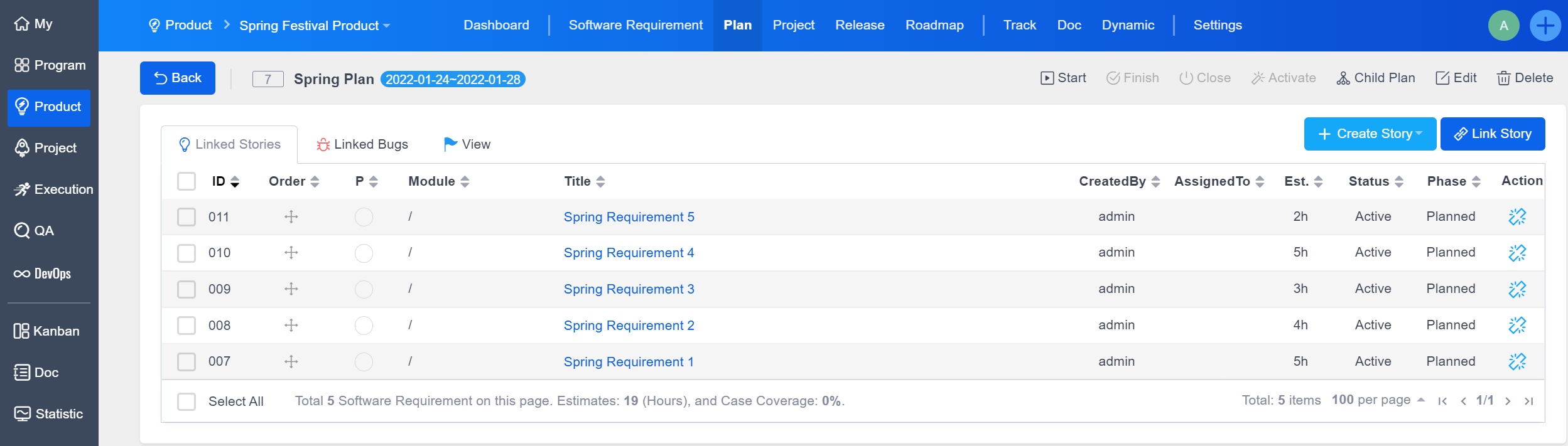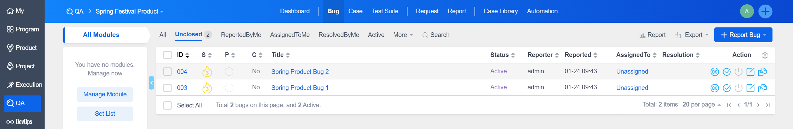 Concerning more features of each module, you can still refer to the manual of ZenTao Open-Source 12 Series.