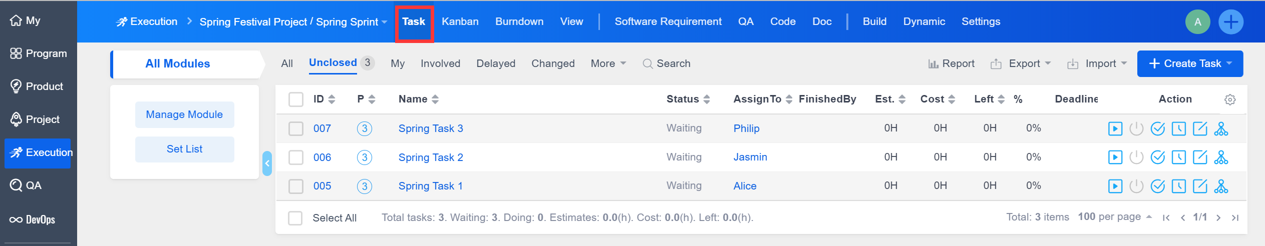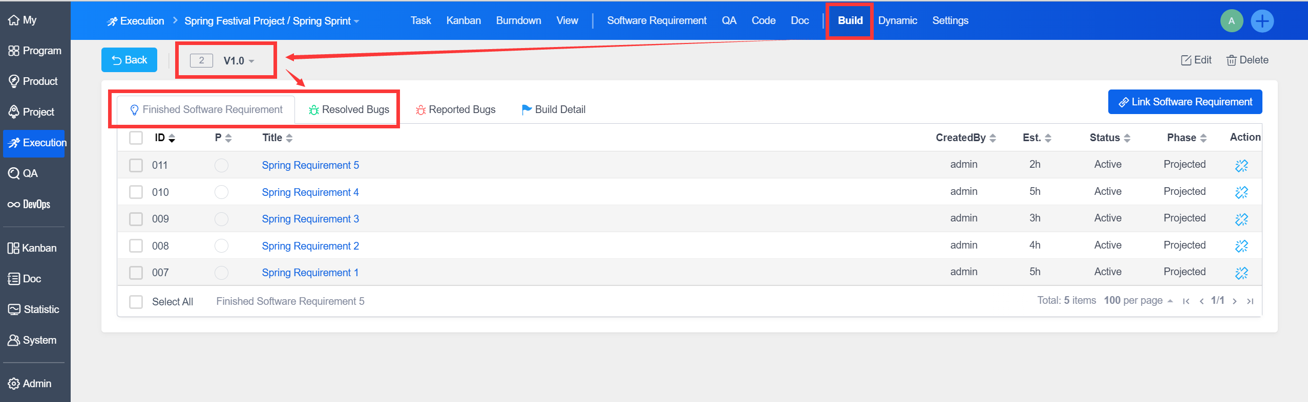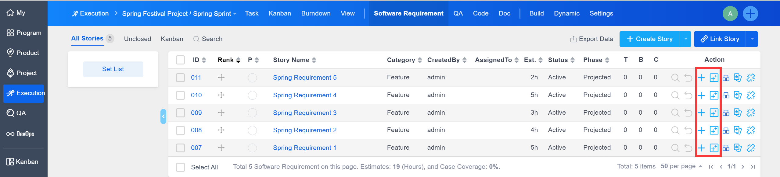 Concerning more features of each module, you can still refer to the manual of ZenTao Open-Source 12 Series.