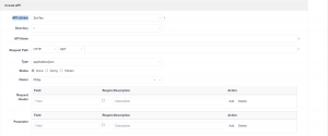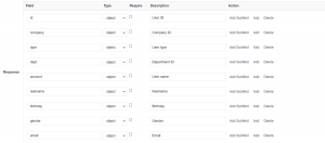 Request response: fill in the response fields of the API, field type, whether it is required, description, adding subfields, etc.