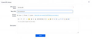 1. Create an API libraryClick the Create button in the upper right corner of the API Library - Documentation page to enter the API library creation page.