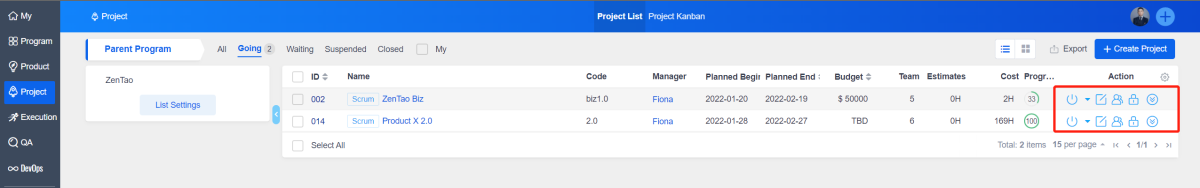Create a project page, the default current prpgram is the parent program. If no parent program is selected, a independent project is created.