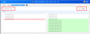 On the Bug details page, you can click view diff in the history record to view directly.
