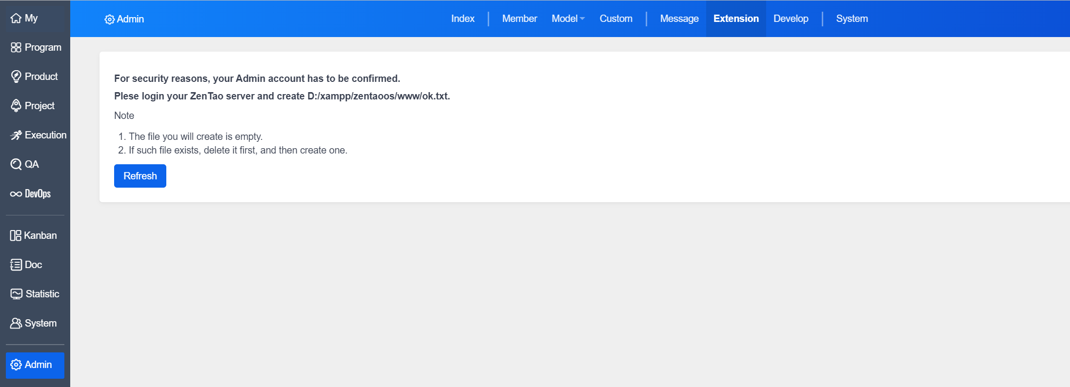 When accessing the extension page for the first time, you need to verify your administrator identity. Just follow the prompts to do.