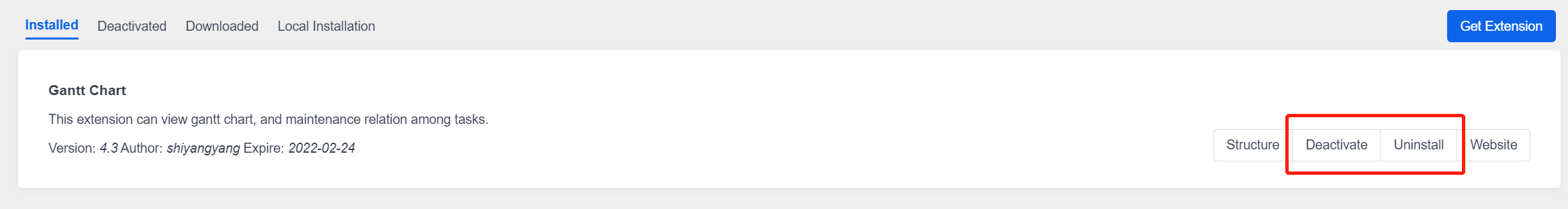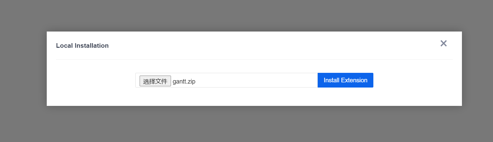 1). Take installing the "Gantt Chart" Extension as an example. Click "Extension" - "Local Installation" and select the extension package. Click "Install Extension".