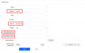 - SonarQube Project: Select the SonarQube project to be associated with from the drop down menu